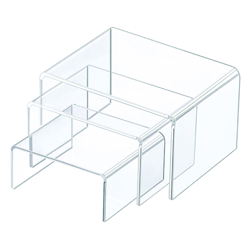 Este alzador acrílico transparente es ideal para elevar productos en vitrinas, escaparates o mesas de presentación. Su diseño sobrio y moderno permite exhibir artículos de forma ordenada, clara y profesional.