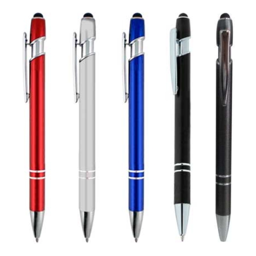 - Descripción: Lapicero metálico de sistema retráctil, con punta touch en la parte superior