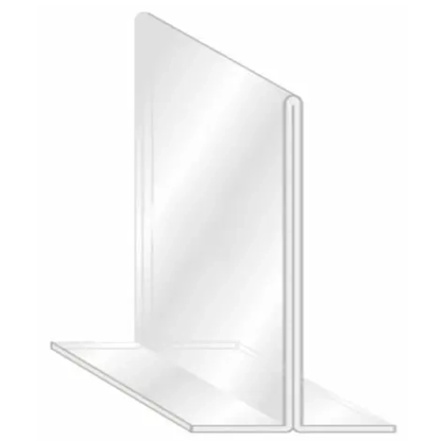 Porta afiche fabricado en acrílico transparente de 2 mm de espesor, diseñado en forma de «T» invertida para una presentación elegante y funcional. Ideal para exhibición de anuncios, promociones, menús y señalización en puntos de venta, oficinas, restaurantes y eventos.