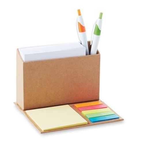 - Descripción: Porta notas con 300 hojas de notas blancas, 25 hojas de notas adhesivas amarillas, 25 hojas 5C banderas adhesivas.