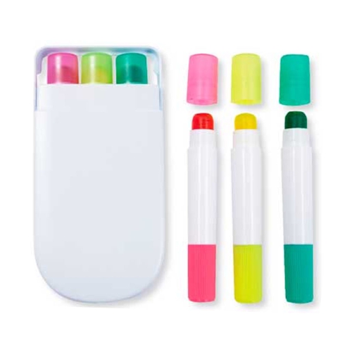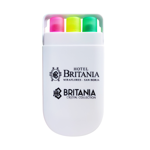 - Contiene 3 Resaltadores color Amarillo, Verde y Fuxia.